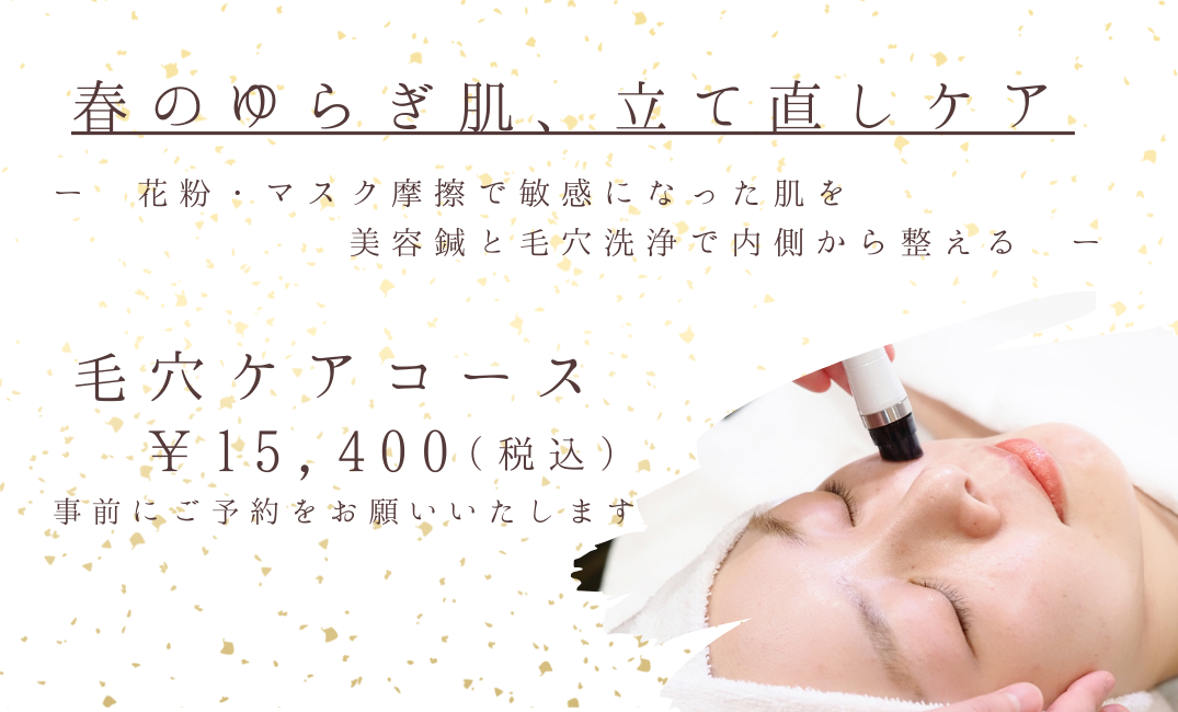 + デコルテマッサージ15分フェイシャルコースに今だけ漢方アロマトリートメントがセットになった限定コース。初めての方のための特別メニューをご用意しました。せひ、お試しください。